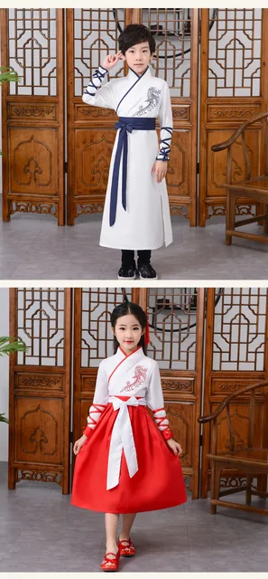 Chinese Women Hero Costumes Child Traditional Hanfu Ancient Fairy Han Tang Dynasty Girls Dresses Set Kids Kung Fu Suit C55320CH