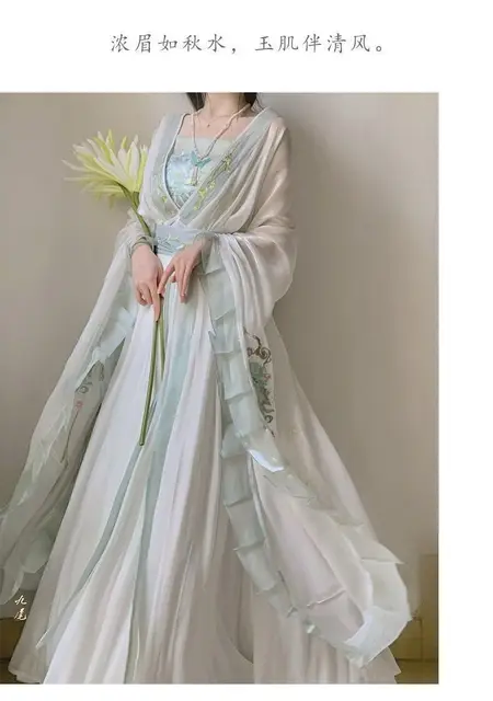 Hanfu Women Chinese Traditional Embroidery Stage Dance Dresses Female Fairy Summer Green White Cosplay Costumes Gift