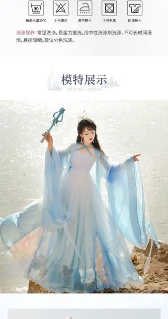 Hanfu Women Plus Size Ancient Chinese Female Fairycosplay Costumes Stage Dance Summer Dresses Gradient Blue